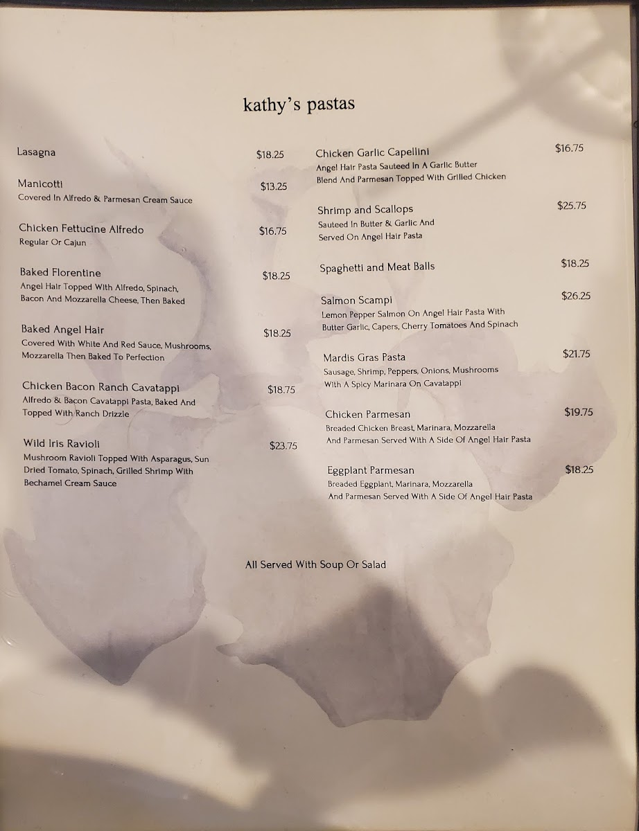 The Wild Iris - Steak, Seafood, & Pasta (Kathy's) Menu